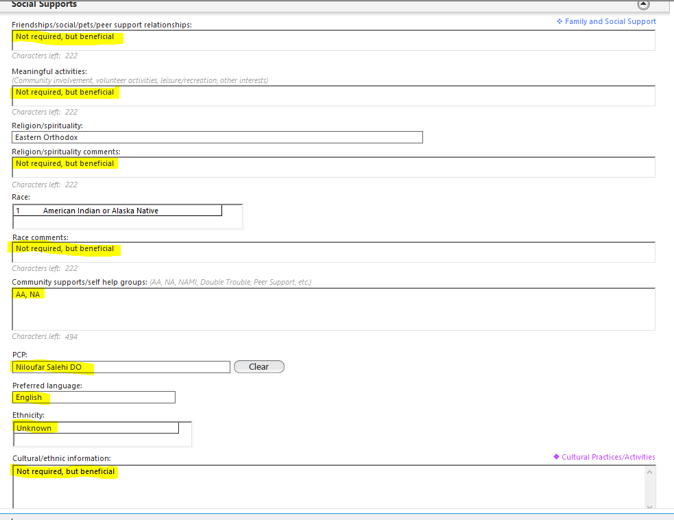 - Click in the field for 'Religion/spirituality to highlight an item from the picklist; click ok to return to the template. Click in the 'Religion/Spirituality' comments field and enter information regarding the client’s religion and/or spirituality.